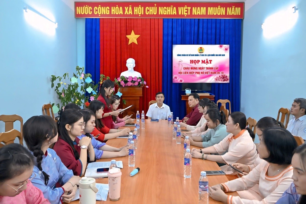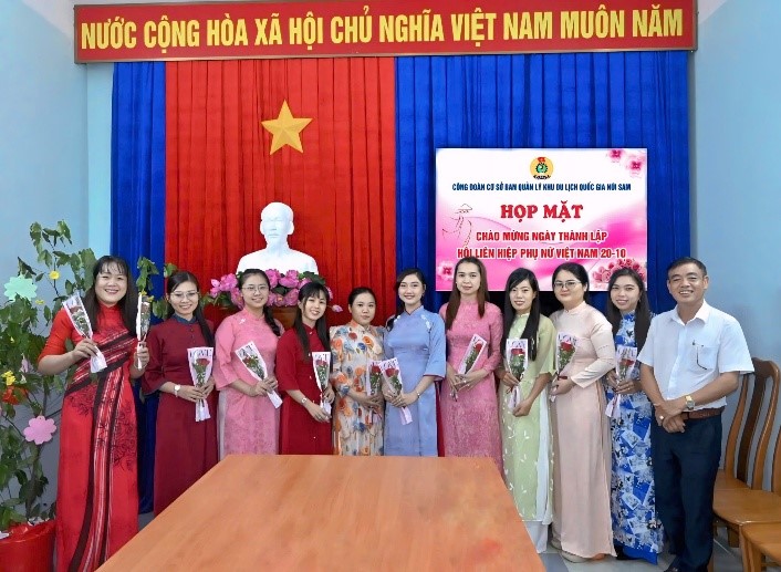 Sáng ngày 20/10/2025, trong không khí rộn ràng chào mừng 95 năm Ngày thành lập Hội Liên hiệp Phụ nữ Việt Nam (20/10/1930 – 20/10/2025), Công đoàn cơ sở Ban Quản lý Khu du lịch quốc gia Núi Sam đã tổ chức buổi họp mặt thân mật nhằm tôn vinh và tri ân những đóng góp của toàn thể nữ cán bộ, viên chức và người lao động trong đơn vị.