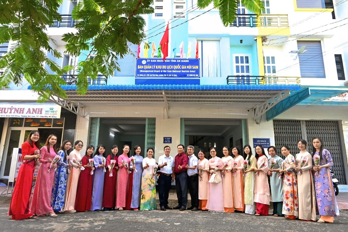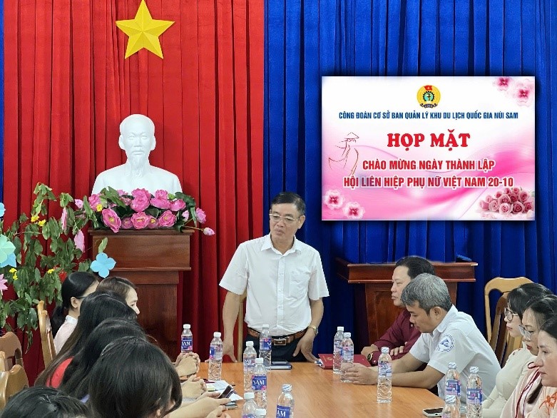 Trong chương trình, đại diện Lãnh đạo Ban Quản lý Khu du lịch quốc gia Núi Sam đã gửi lời chúc mừng tốt đẹp đến toàn thể chị em phụ nữ nhân ngày 20/10; đồng thời ghi nhận, tri ân những đóng góp quan trọng của nữ cán bộ, viên chức và người lao động trong công tác chuyên môn, phục vụ du khách, cũng như trong việc xây dựng hình ảnh Khu du lịch quốc gia Núi Sam văn minh, thân thiện. Lãnh đạo Ban bày tỏ mong muốn toàn thể nữ cán bộ, viên chức và người lao động tiếp tục phát huy phẩm chất “Anh hùng – Bất khuất – Trung hậu – Đảm đang”, nỗ lực hoàn thành xuất sắc nhiệm vụ được giao, đóng góp tích cực cho sự phát triển chung của đơn vị.
